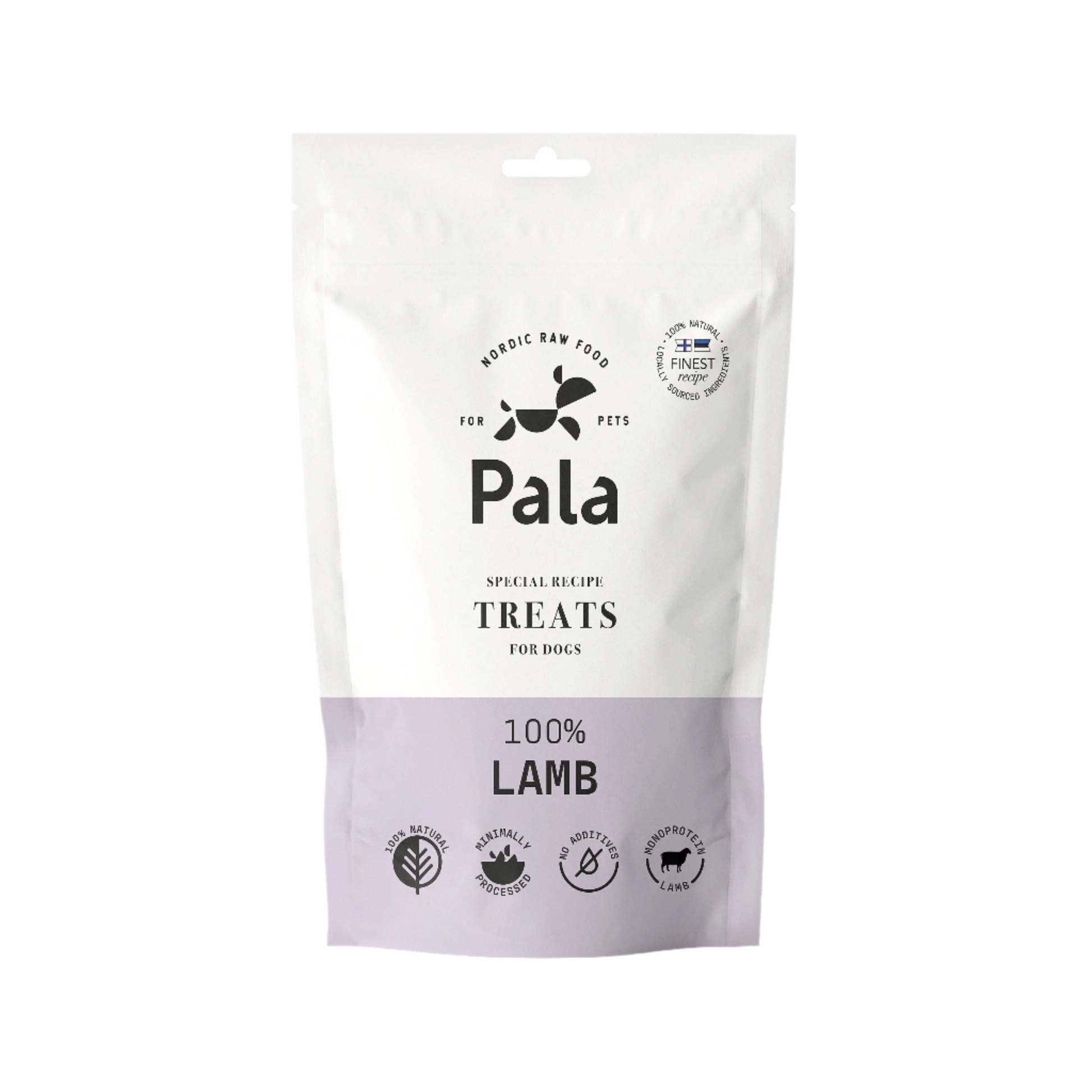 Pala Treats - 100% Lamb recipe, are a high-value and irresistibly tasty treat. Made with hand picked, high quality ingredients, these treats are air dried in small batches at low temperatures. This results in 100% natural and delicious treats with a very high nutritional value.