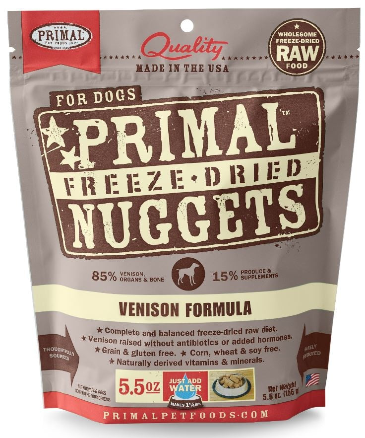 Primal Freeze Dried Nuggets Grain free Venison Formula Complete Diet for Dogs